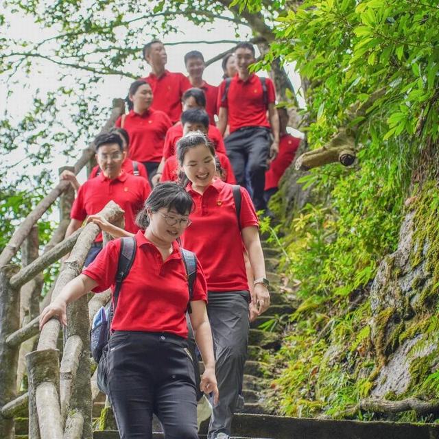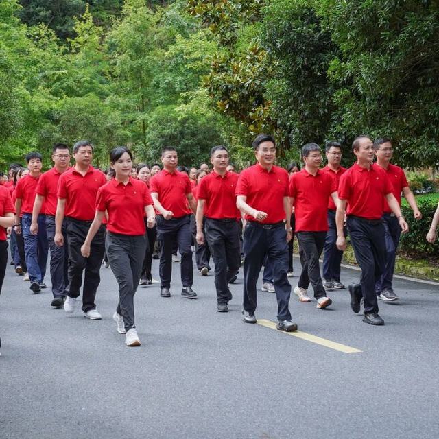 6月14日,为深化第十六届企业文化节内涵,强化党员先锋模范作用,筑牢基层战斗堡垒,博鱼网页版登录入口党委吹响奋进号角。本次由集团党委书记葛炳灶亲自带队,集团各支部共80余名党员赴“金华八婺 第一峰”----武义牛头山,开展“党建聚能,奋进同行”主题党建活动。党员们统一着装红色体恤,队伍在绿水青山间锤炼党性,凝聚发展力量。