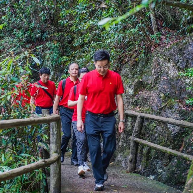 雨后的牛头山,远山含黛,近岭浮青,犹如一幅水墨丹青。密林深秀,光影斑驳,山风送来徐徐清凉。翻开浙江省党史,牛头山的武装游击战给国民党统治当局沉痛打击。忆苦思甜,不忘先烈,重走红军路,博鱼网页版登录入口党员队伍如一条跃动的红色脉搏,向着海拔1560米的峰顶进发。淋漓汗水映照担当,铿锵脚步丈量信念,登顶的每一步都印证着博鱼网页版登录入口党员队伍“奋进同行”的信念与力量,彰显党员在困难面前挺膺在前、带动全员的标杆力量。