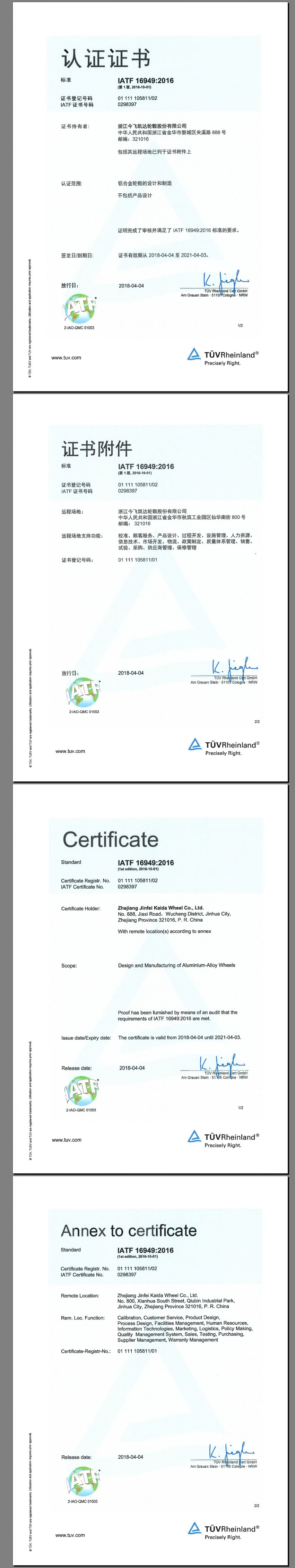 TS16949博鱼网页版登录入口凯达仙华南街工厂质量管理体系认证证书